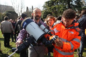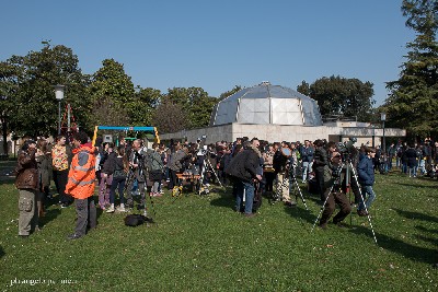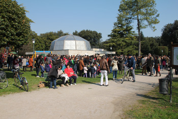 Giardini Pubblici strapieni di persone curiose, non solo di vedere l’eclisse, ma di avere una informazione scientifica su quello che stava succedendo.