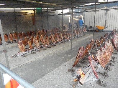 Il barbecue delle coste di maiale ha come sempre un aspetto quasi biblico, oppure pare di essere capitati nei pressi di un accampamento vichingo nell’Alto Medioevo …