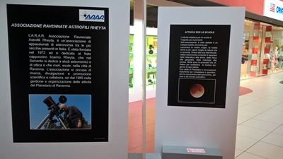 Vari pannelli sul sistema solare, sullo spazio, sulle missioni spaziali e sul Planetario di Ravenna sono stati predisposti dall’organizzazione; un piccolo planetario sotto una cupola gonfiabile e una sfera didattica completavano l’ottimo allestimento.