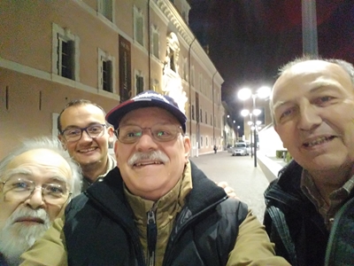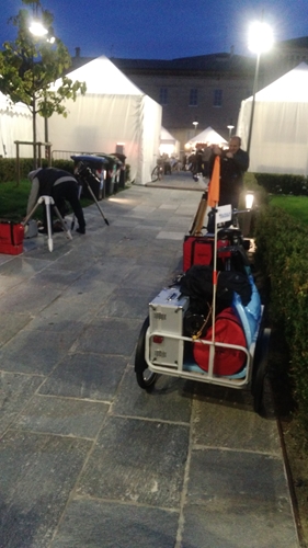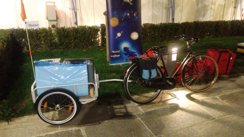 Siamo arrivati sul posto con svariati mezzi, ma soprattutto, dato che la piazza è in area pedonale, con biciclette e carretti al seguito.