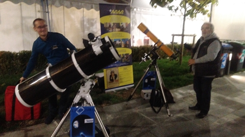 Ci siamo piazzati, verso le 18:00, in una zona di passaggio contornata da giardinetti con quattro telescopi.
