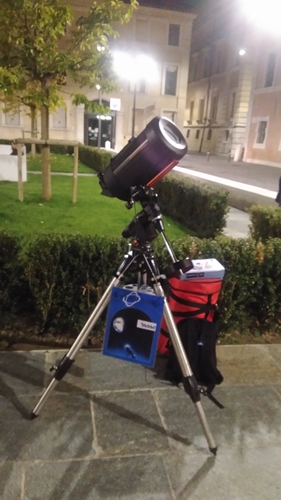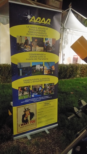 La serata del 28 ottobre in piazza Kennedy era anche dedicata ad una manifestazione enologica molto importante e seguita e quindi abbiamo approfittato della ricca affluenza di pubblico per far osservare ai nostri telescopi il nostro satellite.