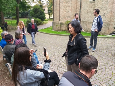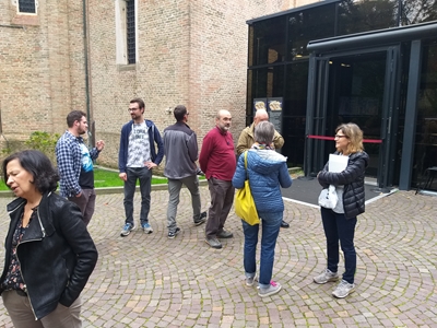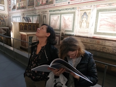 Un folto drappello di soci e parenti (25 partecipanti) si è recato a Padova in gita sociale. Il programma, sapientemente elaborato da Paolo M. con partenza in treno da Ravenna, prevedeva la visita della Cappella degli Scrovegni e relativo museo e uno spettacolo al Planetario di Padova recentemente rinnovato con proiettori digitali 8k. Dopo la visita al museo archeologico e alla pinacoteca (che ospita fra l’altro una croce lignea di Giotto e una Madonna del Mantegna), abbiamo ammirato gli affreschi di Giotto nella Cappella degli Scrovegni soffermandoci, ovviamente, davanti a quello nel quale è raffigurata la cometa di Halley. Dopo un ottimo pranzo, ci siamo recati al Planetario dove ci ha accolto Elena Lazzaretto che ci ha fatto assistere ad un meraviglioso spettacolo sotto la cupola. Non poteva mancare, sulla strada del ritorno, un passaggio alla casa di Galileo.