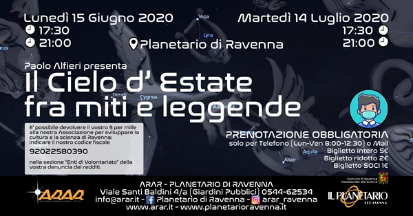 Il 15 giugno, finalmente abbiamo ripreso le nostre attività con una conferenza sul cielo d'estate e i suoi miti, che ha trovato un'ottima affluenza di pubblico nei due turni previsti.