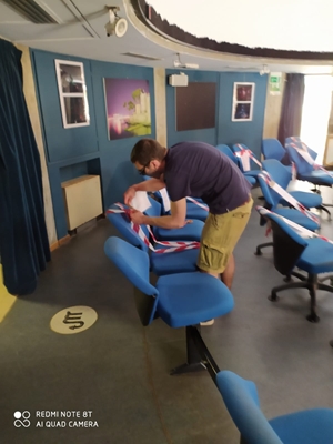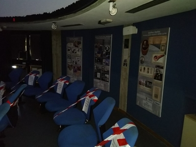 Per abbellire ulteriormente la nostra cupola in questa riapertura, i dieci pannelli sulla storia della conquista dello spazio che abbiamo portato nelle scuole e biblioteche ravennati durante "Luna2019", hanno trovato posto sulle pareti che circondano la sala.