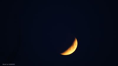 Il 16 maggio di quest'anno abbiamo assistito ad un'eclissi totale di Luna un po' anomala, in quanto la fase di totalità è avvenuta quando la Luna stava tramontando e il Sole già illuminava il cielo.