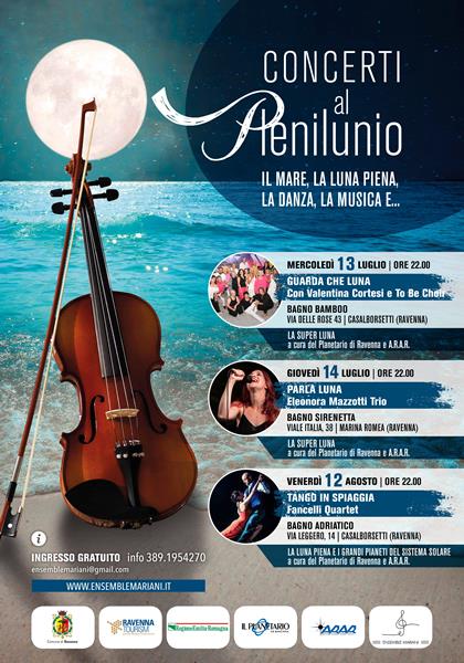 Dopo l'esperienza del 2019 in occasione delle manifestazioni per il 50° Anniversario dello sbarco sulla Luna, finalmente, dopo due anni di interruzione, riprendiamo la bellissima collaborazione con Matteo Salerno e Ensemble Mariani per "I concerti al Plenilunio". Tre appunamenti sulla spiaggia per osservare la Luna e il cielo accompagnati da bellissima musica!