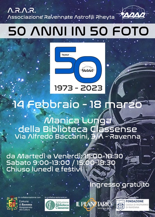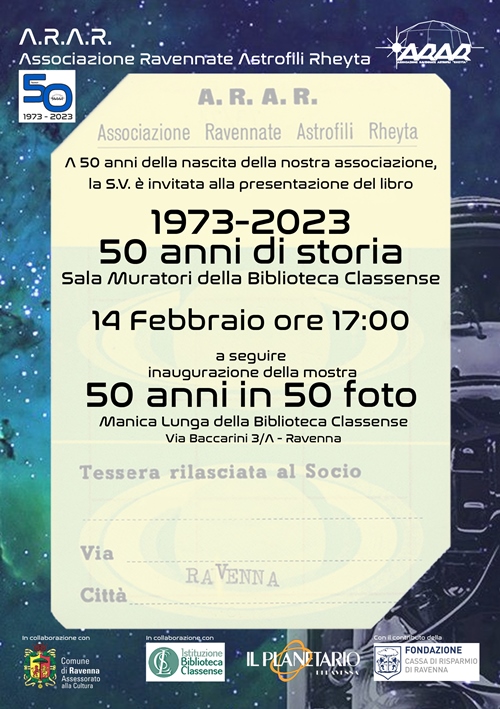 Un traguardo sempre importante per tutti ma per una associazione lo è ancora di più. L’A.R.A.R. li ha compiuti il 14 febbraio di quest’anno, il 2023. In cinquanta anni di solito molte cose fanno in tempo a nascere per poi perdersi, dissolversi col tempo. Non è questa la sorte toccata alla nostra associazione. La storia dell’A.R.A.R. in questo mezzo secolo racconta in gran parte anche la storia dell’astrofilia di Ravenna, dalle pionieristiche osservazioni di Padre Lambertini, dalle prime iniziative organizzate da Don Dino Molesi negli anni ‘70 fino alle ultime testimonianze sull’attività del James Webb Space Telescope. Mantenere vivo l’entusiasmo in così tante persone che si sono avvicendate per tutto questo tempo non è certo cosa da poco.