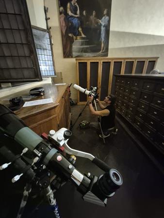 La notte d'oro di Ravenna l'abbiamo dedicata all'osservazione della Luna e di Saturno dai finestroni del Corridoio Grande della Biblioteca Classense.