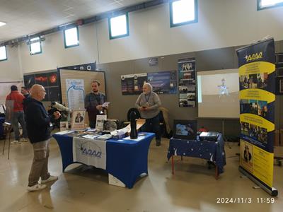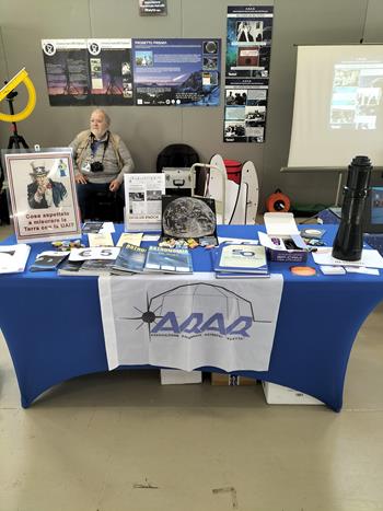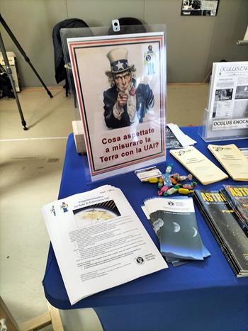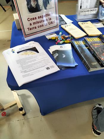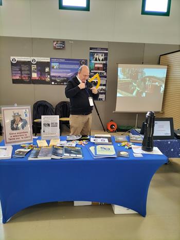 Noi (ARAR, Delegazione UAI DELRA02) già al Congresso UAI 2024 a Scheggia ci eravamo offerti di rappresentare la UAI al nostro stand, e così è stato. L’allestimento dello stand prevedeva espliciti ed evidenti segni della presenza della Unione Astrofili Italiani alla Fiera: • Un poster informativo • Materiali (depliant e pieghevoli) • Numeri della rivista Astronomia UAI in esposizione e vendita • Volantini e un exhibit relativi alla neonata esperienza della Rete di Eratostene UAI.